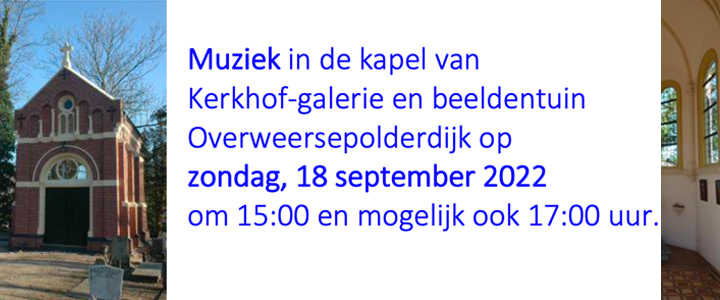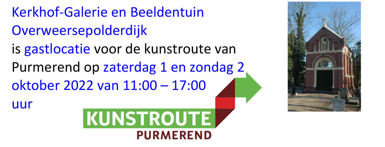Zondag, 5 maart exposeren 24 kunstenaars hun werk bij Kerkhof-galerie en beeldentuin Overweersepolderdijk in Purmerend. De expositie, waarbij de exposanten aanwezig zijn is te bezoeken van 12:00 – 16:30 uur in en om de kapel op de begraafplaats uit 1875 aan de Overweersepolderdijk 24 in Purmerend.